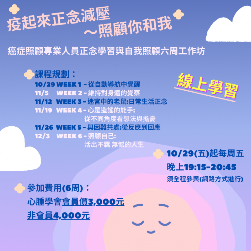 從癌症病人的心理情緒照護為基礎的心理腫瘤醫學講起,進而衍伸到醫病溝通的技巧,從醫療團隊與病人溝通的過程中瞭解可選擇的治療方式及醫病共同決策治療方式。再來探討如何由不同職系提供不同等級和面向的心理腫瘤服務,如腫瘤科醫師、精神科醫師、護理師、社工師及心理師,甚至照護與陪伴者如何從自己的角色與工作中提供初步的心理照護服務與服務的評估工具,又如何與其他專業人員合作,以及原團隊如何與後來轉介的專業人員配合…等。 心腫學會特別規劃出4個課程,源自既定的癌症治療中,又多加一點心理照護的角度,藉此希望幫助臨床的各類職別,完整認識心理腫瘤照護,回饋於臨床所照顧的癌症病人。