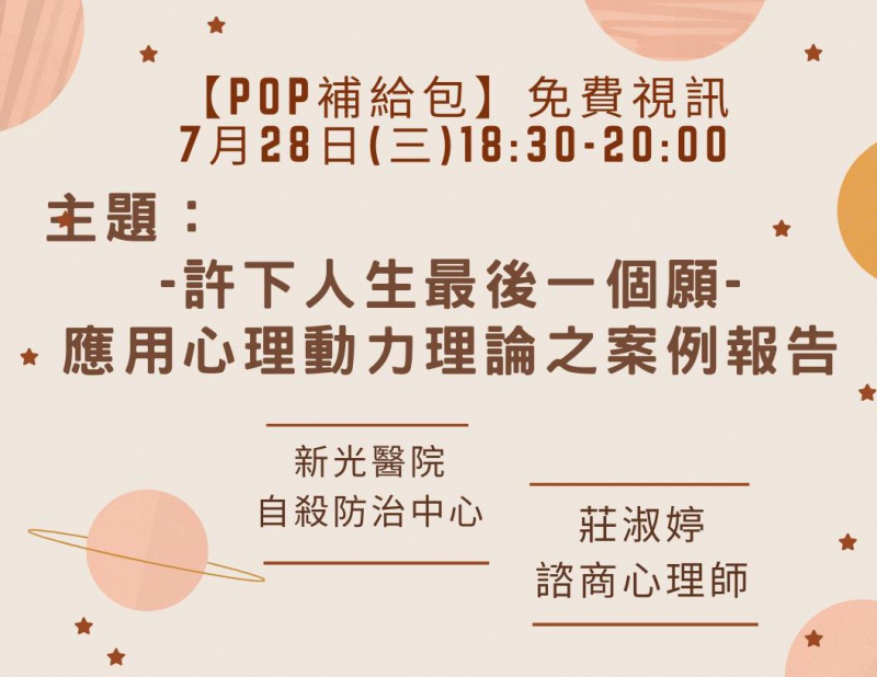課程對象:各醫療院所之醫師、護理師、社工師、心理師及照顧者、關懷師。 地點:【台北】台灣文創訓練中心 報名限額:每課程限額